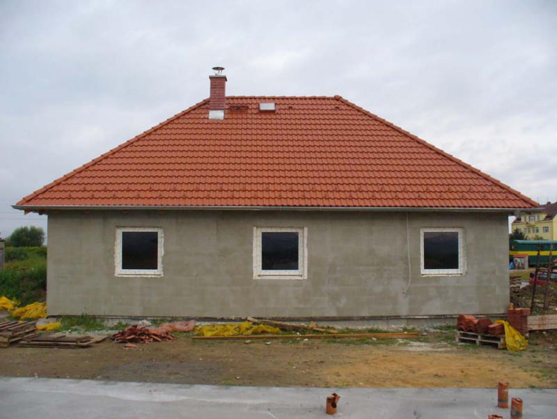 Tento d?m vychz z typovho domu Leo, upravena vak byla vnit?n dispozice domu i p?dorysn rozm?r gare. P?ibyl tak komn, krb a terasa. D?m je vytp?n elektrokotlem napojenm na okruh st?ednho vytp?n s raditory. Obvodov zdivo je z Ytongu tlou?ky 375 mm, vnit?n nosn st?ny z Ytongu tlou?ky 200 mm. Krov je klasick tesa?sk trmov, st?echa valbov se sklonem 40. Strop je pochoz, p?da je p?stupn po stahovacch sch?dcch a vyuiteln jako skladovac prostor. Garov vrata jsou zateplen rolovac, s el. pohonem a na dlkov ovldn.